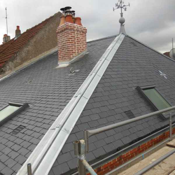 Nous effectuons également les raccordements entre les différents éléments de votre toiture : abergement de cheminées, fenêtres de toit, gaines d’aération, solins, noues...